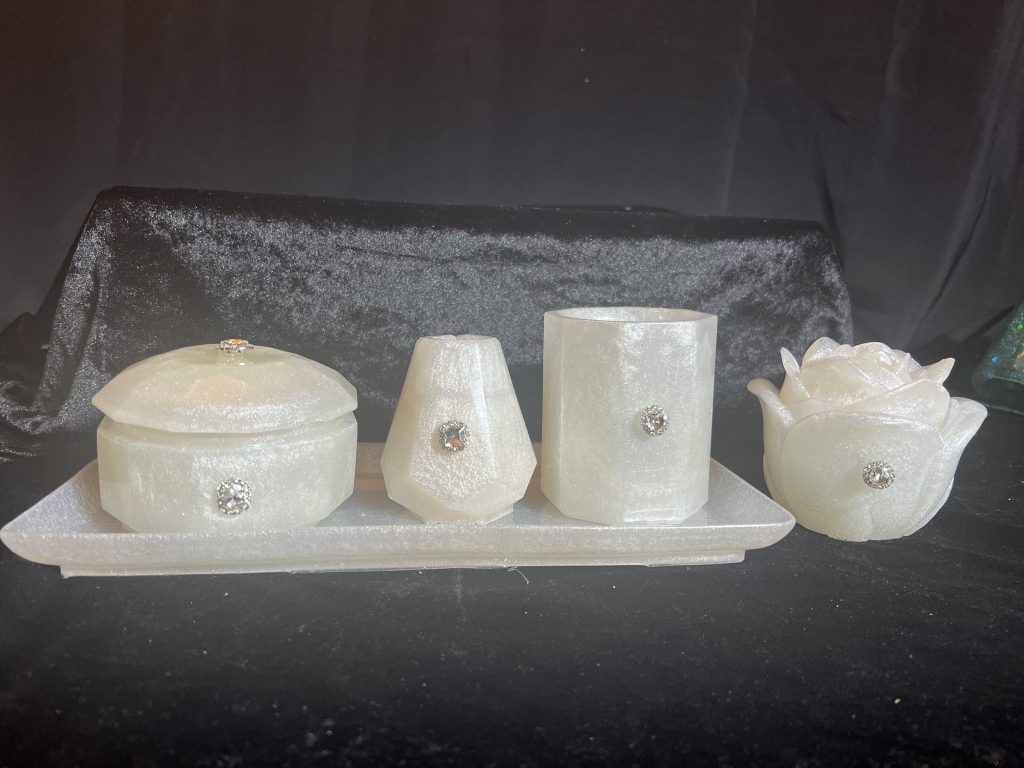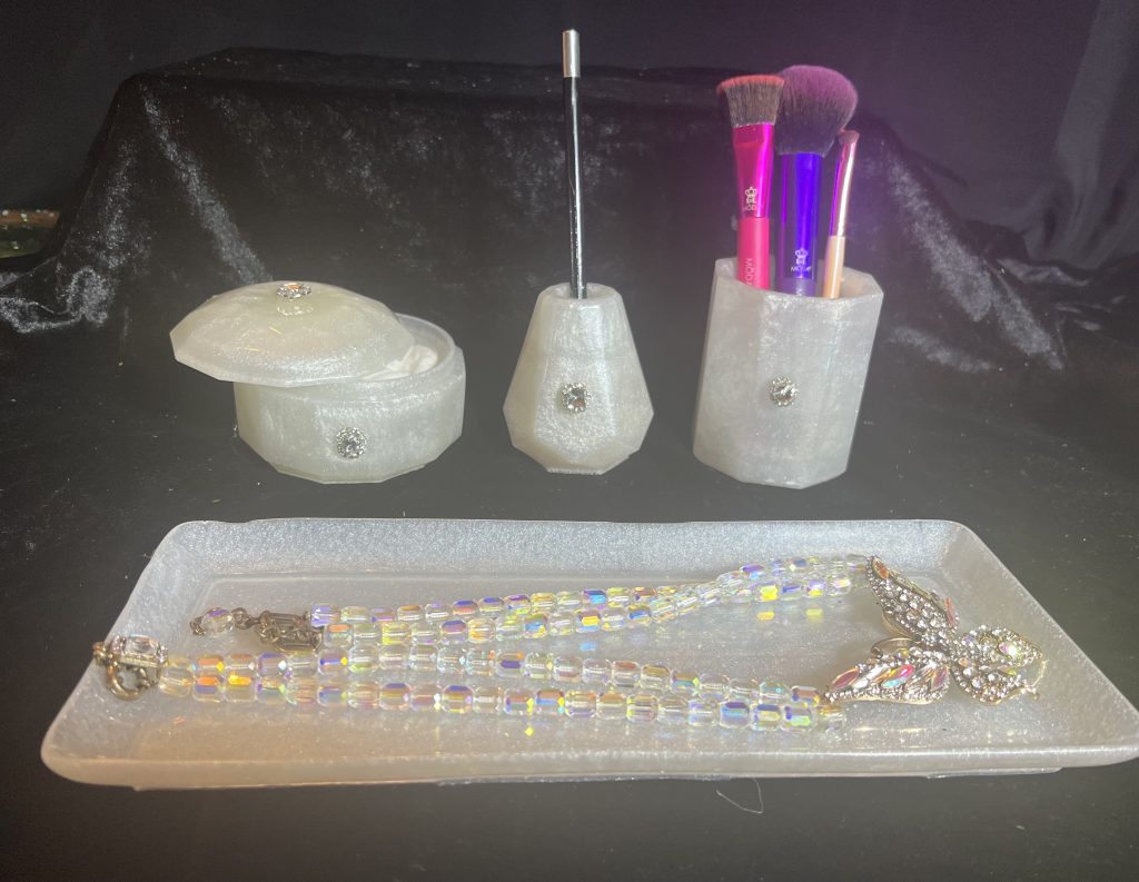 The 5-piece set is versatile; all items can be arranged together, or the jewel tray can be used separately to beautifully display your jewelry.