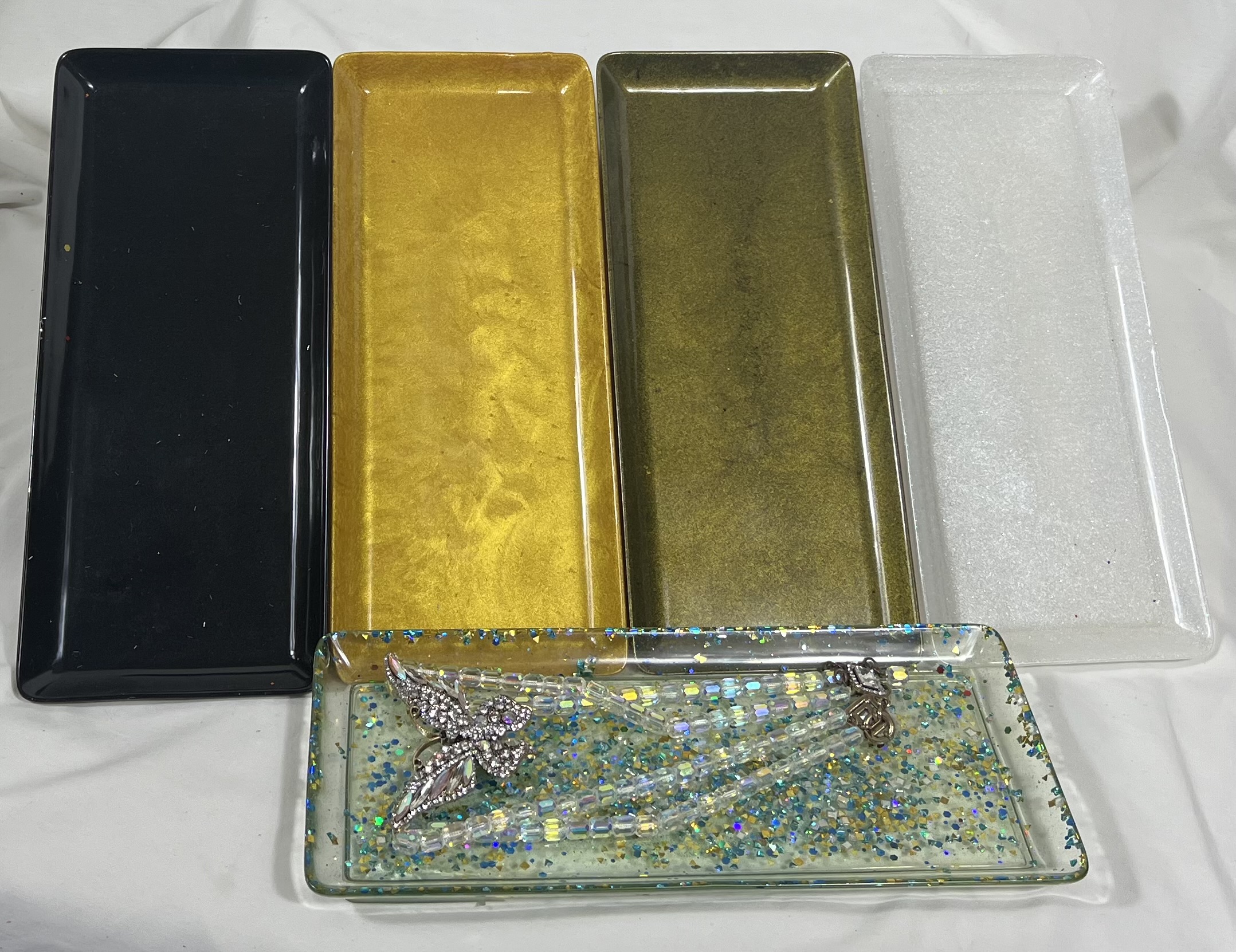 The Ladies Cosmetic and Jewel Tray Collection is an exquisite assortment of trays thoughtfully designed to organize cosmetics and jewelry. Each piece in the collection is crafted with meticulous attention to detail, blending elegance and functionality to enhance the look and utility of any vanity or dresser.